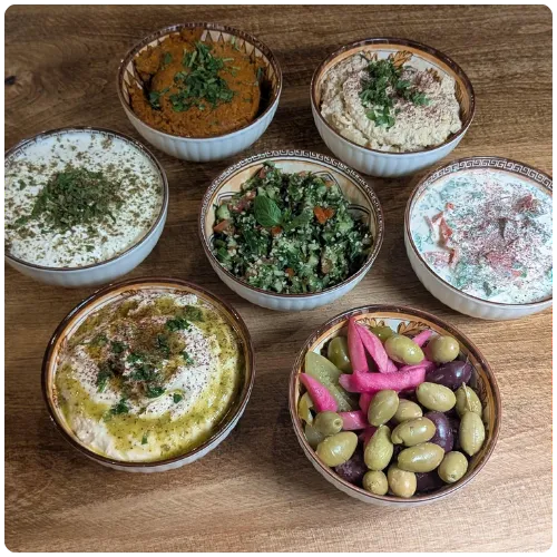 Pick 3, 4, or 5 of any of our cold mezze for a custom platter to enjoy