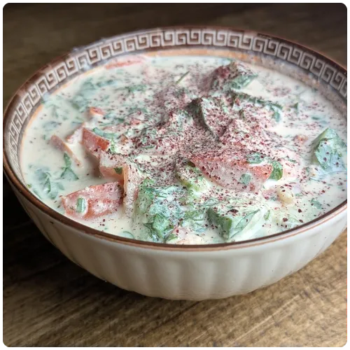 Chicken, onions, and sumac sautéed with olive oil, served with tzatziki sauce (yogurt with cucumbers, mint, and garlic)