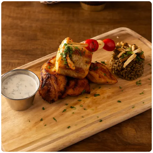 Grilled chicken breast marinated with Mediterranean spices, topped with sumac and parsley, served with house muthawama (garlic sauce)