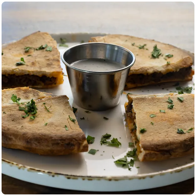 Seasoned ground beef and lamb stuffed in a pita, then baked to a crispy perfection, served with tzatziki sauce