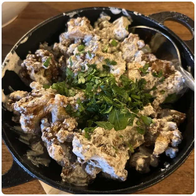 Lightly fried cauliflower florets tossed in sumac and house tahini sauce
